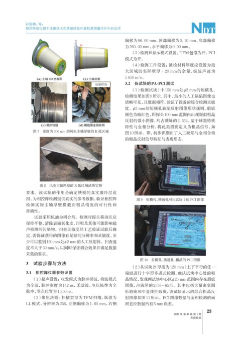 围,为相控阵检测提供真实的参考数据,验证相控阵 图 9 短横孔、横通孔对比试块 1 的 PCI 图像