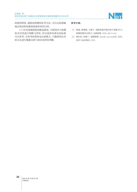 (2)针对球墨铸铁的粗晶情况,可使用PCI检测 [1] 张瑞,钟德煌,王晓宁. 相控阵超声相位相干成像(PCI)