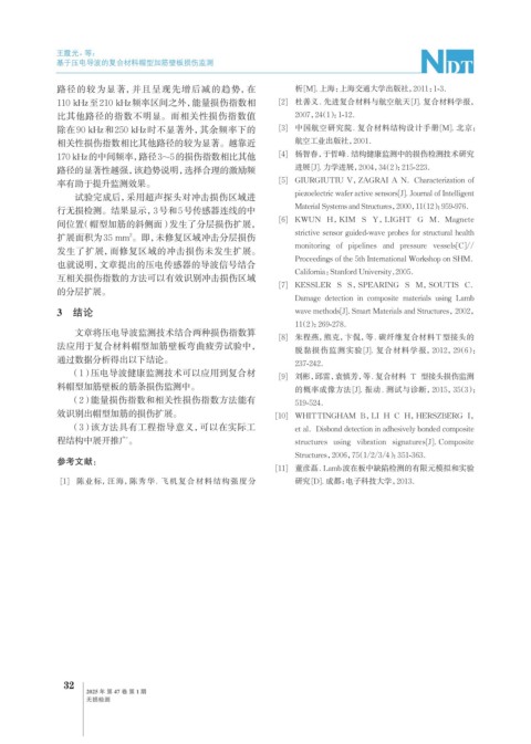 (1)压电导波健康监测技术可以应用到复合材 [9] 刘彬, 邱雷,袁慎芳,等. 复合材料 T 型接头损伤监测