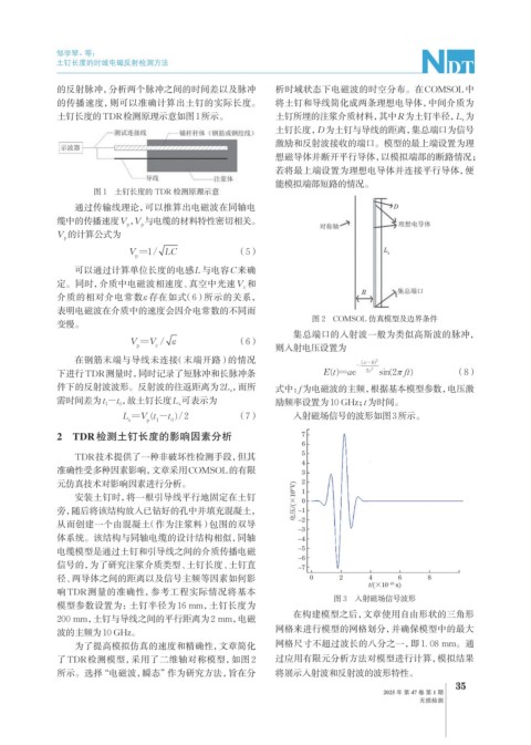的传播速度,则可以准确计算出土钉的实际长度。 将土钉和导线简化成两条理想电导体,中间介质为