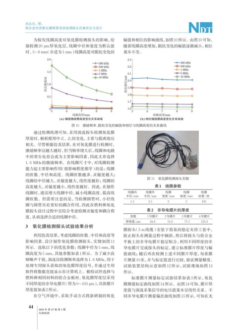 所示。选取以下的优化参数:线圈中径为5 mm,线 导电膜片完成探头的标定,建立标准膜片厚度与幅