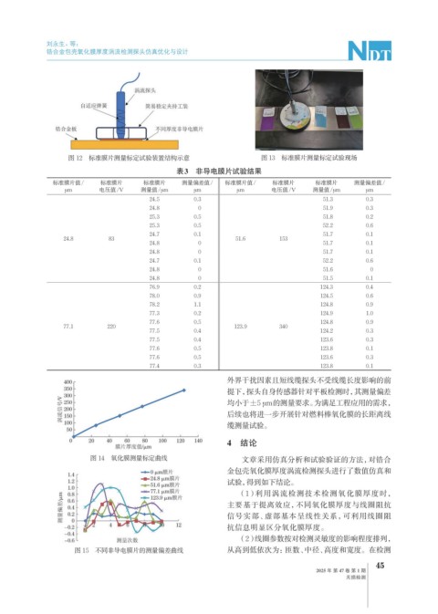 图 14 氧化膜测量标定曲线 文章采用仿真分析和试验验证的方法,对锆合