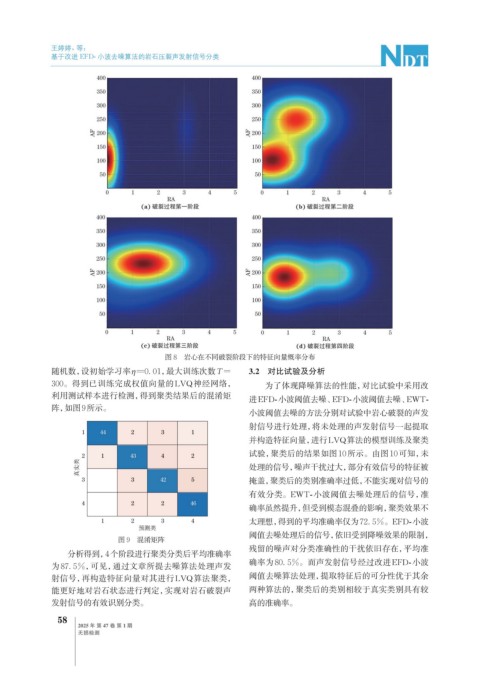 利用测试样本进行检测,得到聚类结果后的混淆矩 进EFD-小波阈值去噪、EFD-小波阈值去噪、EWT-
