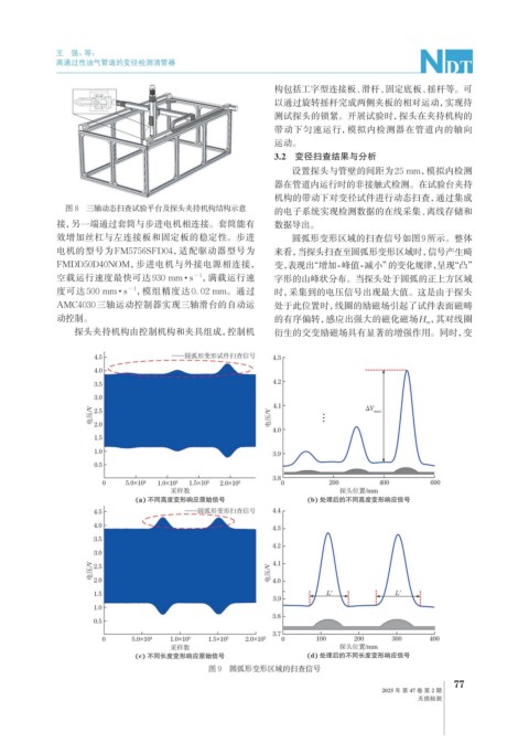 度可达 500 mm · s ,模组精度达 0. 02 mm。通过 时,采集到的电压信号出现最大值。这是由于探头