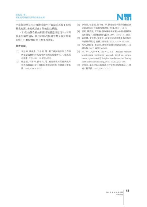 声发射检测技术对吸附塔微小开裂缺陷进行了在线 [3] 李培源,杜金强,何宇廷,等.钛合金结构疲劳损伤监测