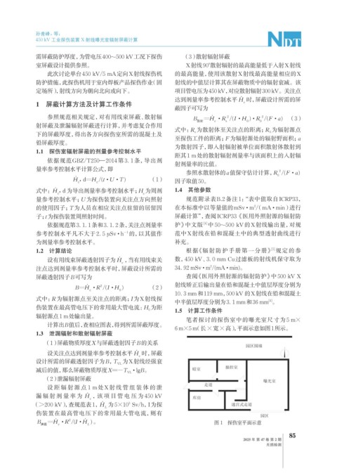 定场所),射线方向为朝向北向或向下。 项目管电压为450 kV,对应散射辐射300 kV。关注点