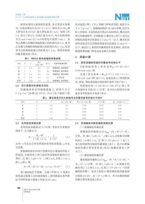 屏蔽墙材料采用钢筋混凝土,密度不小于 出剂量率水平按式(1)计算。各方向X射线导出剂