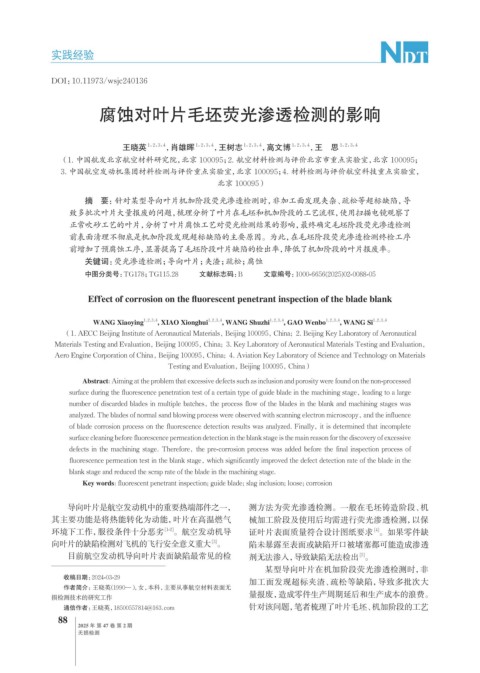 腐蚀对叶片毛坯荧光渗透检测的影响