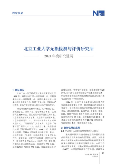 北京工业大学无损检测与评价研究所成立于 余项。研究所在无损检测和结构健康监测新技术、