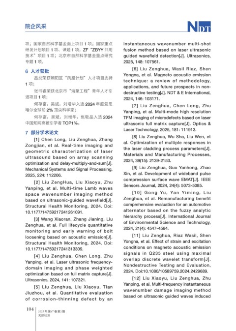 何存富,吴斌,刘增华,焦敬品入选 2024 TFM imaging of microdefects based on laser
