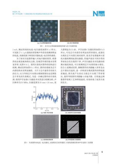 显异常[见图6(b)]。使用X射线对器件的结构进行 测灵敏度极高,可以探测到芯片内部的细小裂纹。