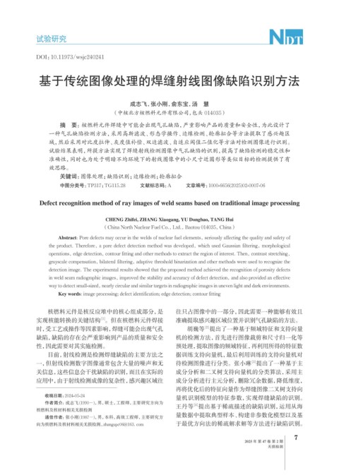 Abstract: Pore defects may occur in the welds of nuclear fuel elements, seriously affecting the quality and safety of