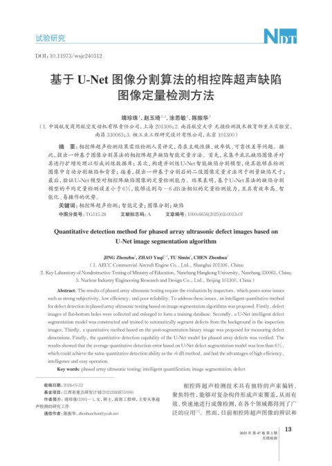 关键词:相控阵超声检测;智能定量;图像分割;缺陷