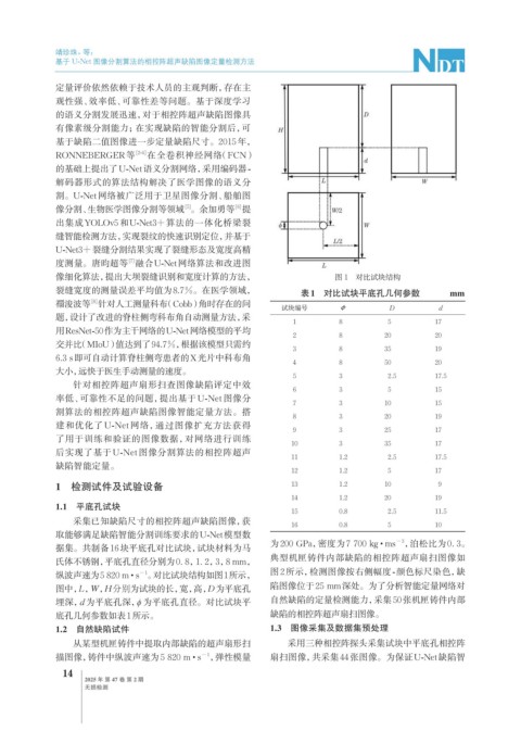 基于 U-Net 图像分割算法的相控阵超声缺陷图像定量检测方法