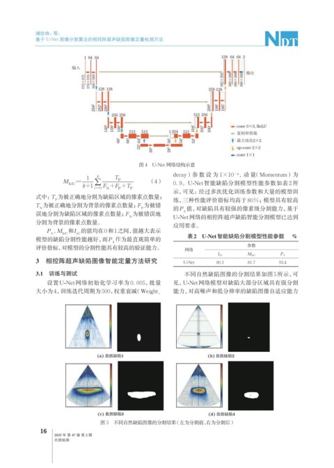 IoU k F +F +T 0. 9。U-Net 智能缺陷分割模型性能参数如表 2 所
