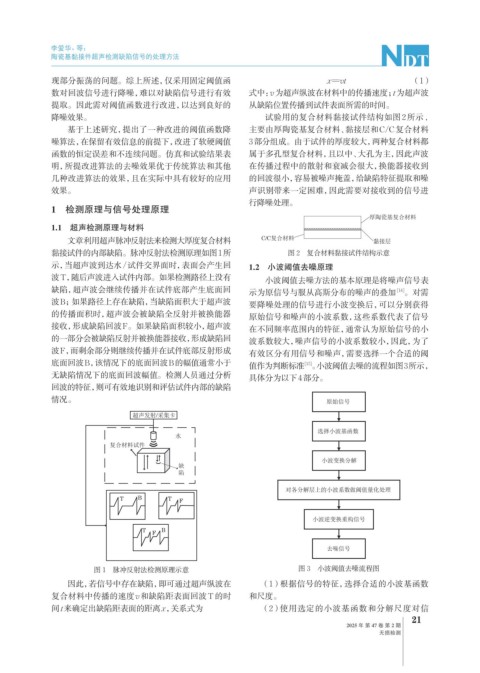 数对回波信号进行降噪,难以对缺陷信号进行有效 式中:v为超声纵波在材料中的传播速度;为超声波