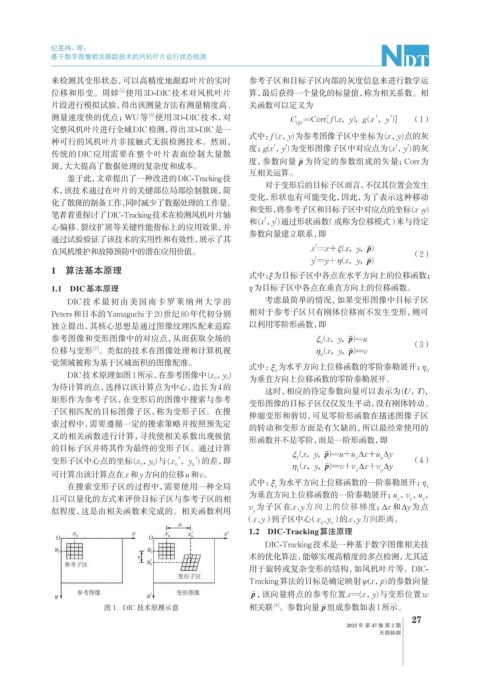 来检测其变形状态,可以高精度地跟踪叶片的实时 参考子区和目标子区内部的灰度信息来进行数学运