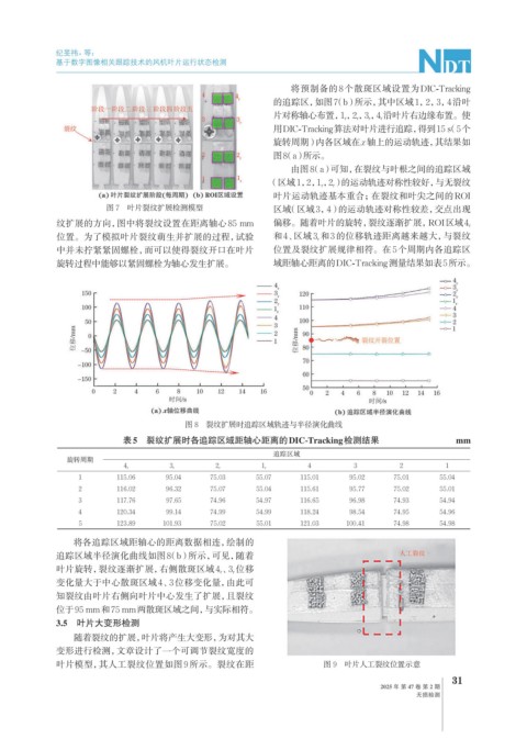 位置。为了模拟叶片裂纹萌生并扩展的过程,试验 和4、区域3 r 和3的位移轨迹距离越来越大,与裂纹