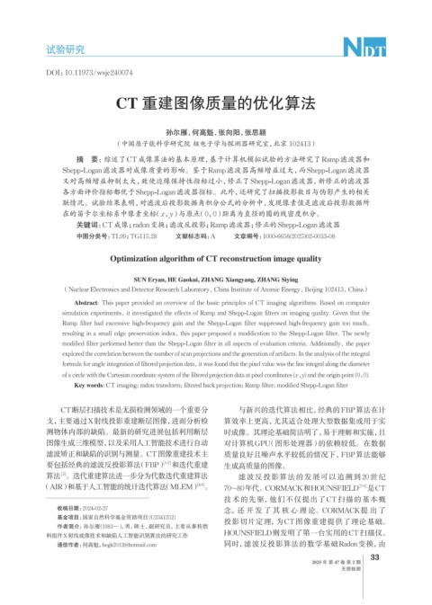 滤波矫正和缺陷的识别与测量。CT图像重建技术主 质量良好且噪声水平较低的情况下,FBP算法能够