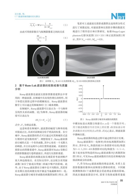 由此可得投影数目与探测器像素之间的关系 现进行了程序设计和计算研究。标准Shepp-Logan