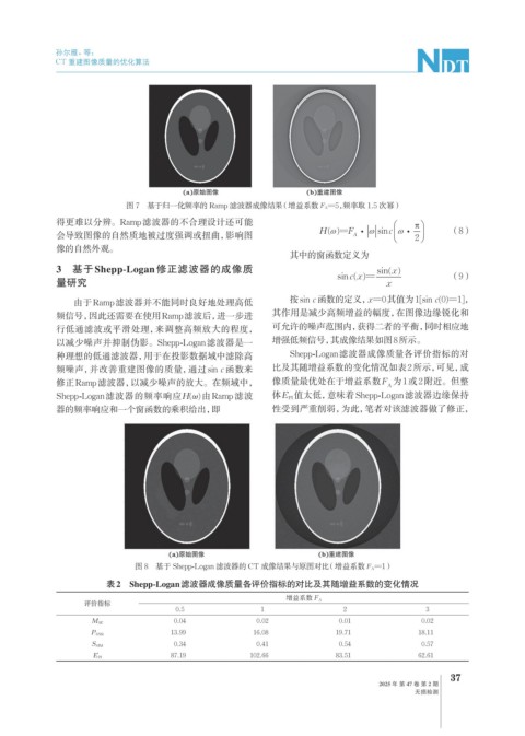 以减少噪声并抑制伪影。Shepp-Logan滤波器是一 增强低频信号,其成像结果如图8所示。