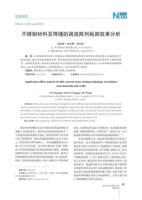 洋工程无损检测技术工作 涡流阵列检测技术的应用试验研究。文章主要介绍