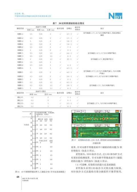 效果。针对未磨平焊缝表面开口缺陷的检出能力(软