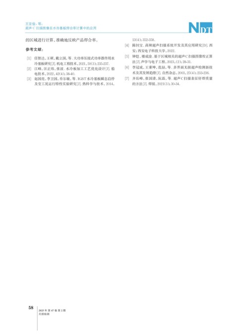 [3] 赵国亮,李卫国,乔尔敏,等. IGBT水冷基板瞬态启停 [7] 齐岳峰,张国清,阮磊,等. 超声C扫描表征钎焊质量