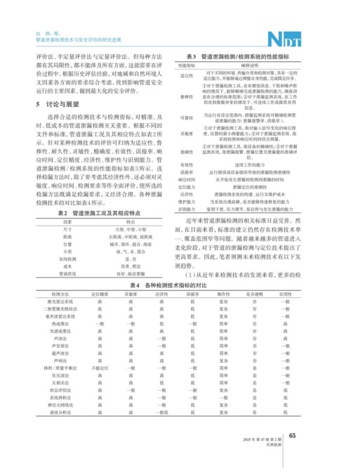 评价法、半定量评价法与定量评价法。但每种方法 表3 管道泄漏检测/检测系统的性能指标
