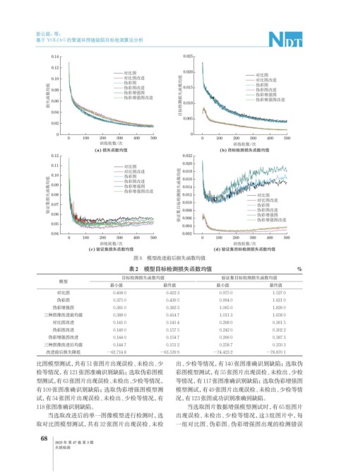 比图模型测试,共有51张图片出现误检、未检出、少 出、少检等情况,有140张图准确识别缺陷;选取伪