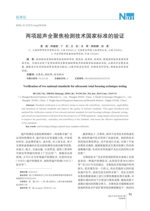analyzed the verification content of two released national standards for total focusing technique ultrasonic testing,