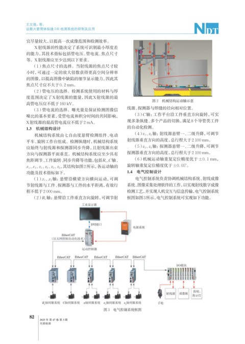 (1) 1 、 x 2 轴:悬臂沿横梁方向横向运动,可调 电气控制系统负责协调机械结构系统、射线成像