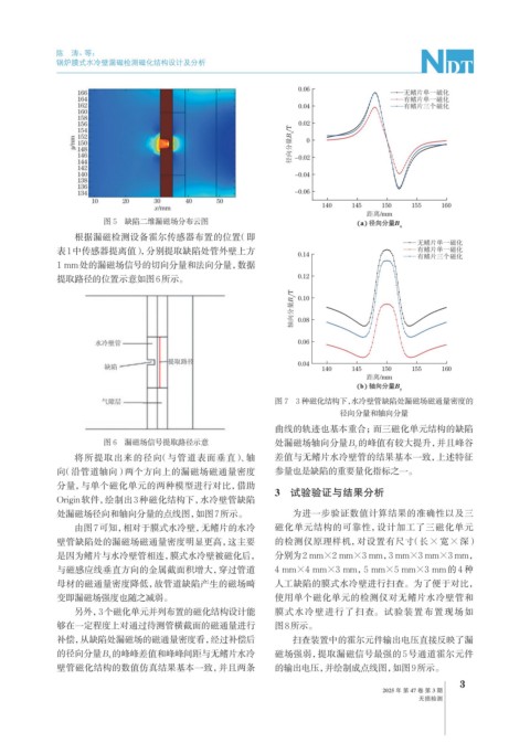 是因为鳍片与水冷壁管相连,膜式水冷壁被磁化后, 分别为2 mm×2 mm×3 mm,3 mm×3 mm×3 mm,