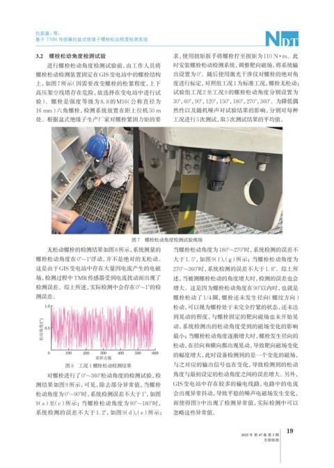检测误差。综上所述,实际检测中会存在0°~1°的检 增大。这是因为螺栓松动角度在90°以内时,也就是