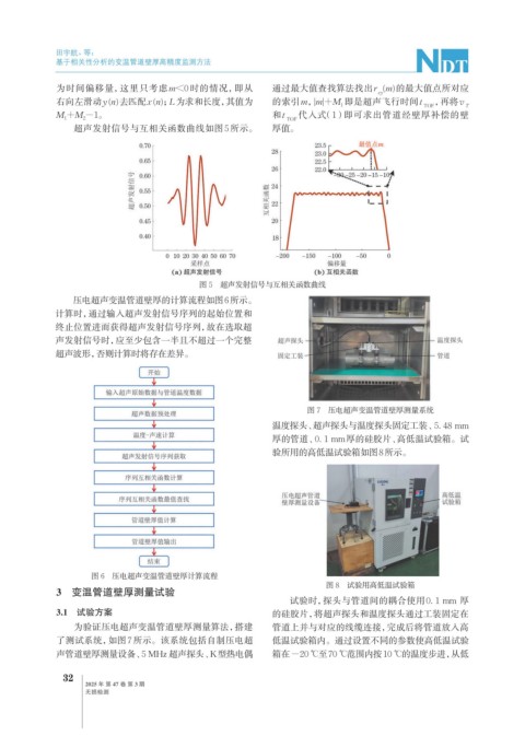 超声发射信号与互相关函数曲线如图5所示。 厚值。