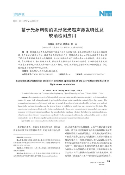 为无损检测及信号处理与重建、超声检测,chenyouxing@nuc.edu.cn 此限制了激光超声对工件内部缺陷的无损检测能力。