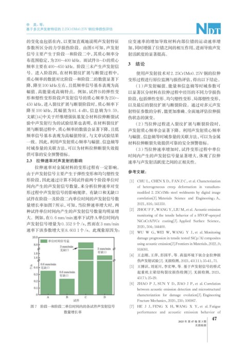 号。进入阶段四,在材料裂纹扩展与断裂过程中, 使用声发射技术对2. 25Cr1Mo0. 25V钢的拉伸
