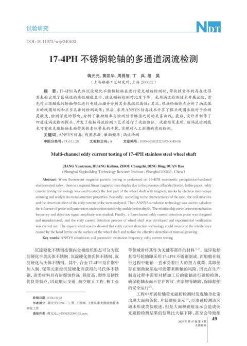 17-4PH 不锈钢轮轴的多通道涡流检测