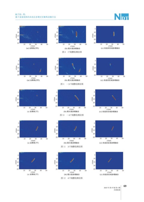 鲍子阳,等: 基于直接视图的自适应多模式全聚焦成像方法 图 8 0°刻槽检测结果 图 9 -30°刻槽检测结果 图 10 -45°刻槽检测结果 图 11 30°刻槽检测结果 图 12 45°刻槽检测结果 69 2025 年 第 47 卷 第 4 期 无损检测