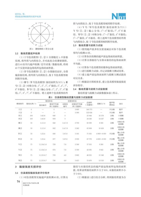 (1) 对仿真模型实施超声波检测40次,计算出 (2)根据表1进行综合分析,得到黏结质量为合