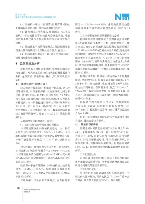 (1)运行压缩机组管线服役应力特征 4.2 压缩机切换开机