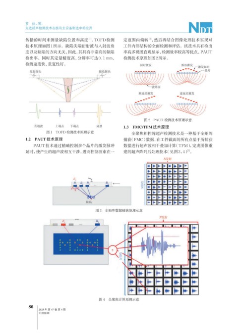图 1 TOFD 检测技术原理示意 全聚焦相控阵超声检测技术是一种基于全矩阵