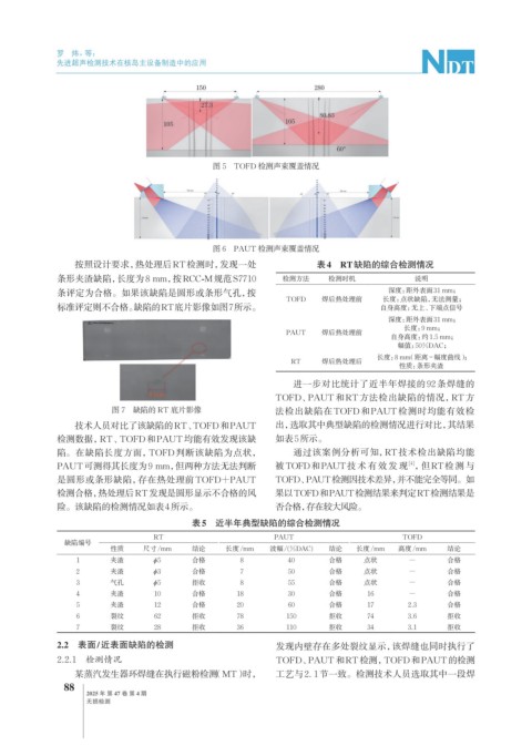2.2.1 检测情况 TOFD、PAUT和RT检测,TOFD和PAUT的检测