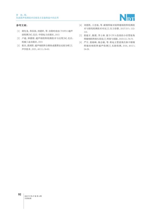 [2] 卢超,钟德煌.超声相控阵检测技术与应用[M].北京: 焊缝相控阵探头优化[J].科技与创新,2021(4):78-79.