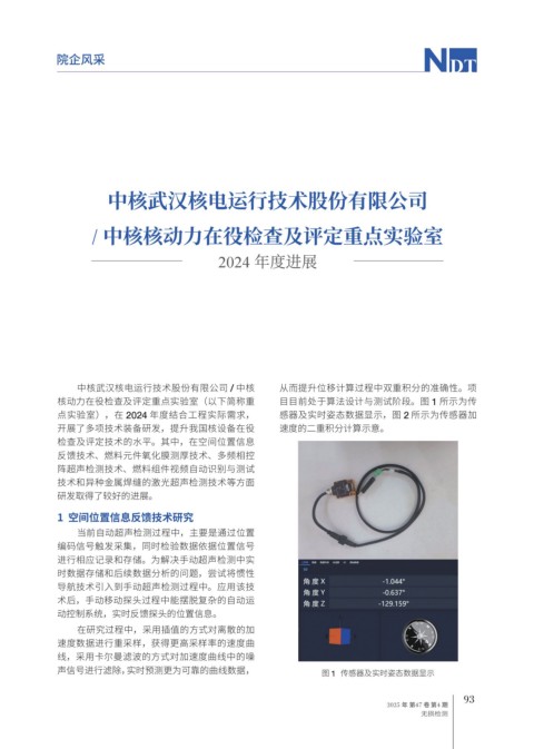 点实验室),在 2024 年度结合工程实际需求, 感器及实时姿态数据显示,图 2 所示为传感器加