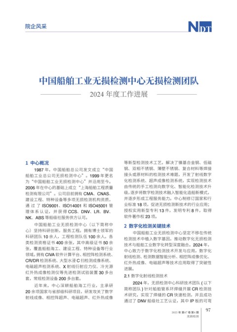 船舶工业总公司无损检测中心”。1999 年更名 接头或原材料的检测技术难题,开发了射线数字