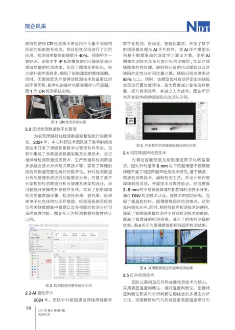 形状的船舶管系检测。项目组在现场进行了示范 射线图像处理与 AI 评片软件。该 AI 评片模型采