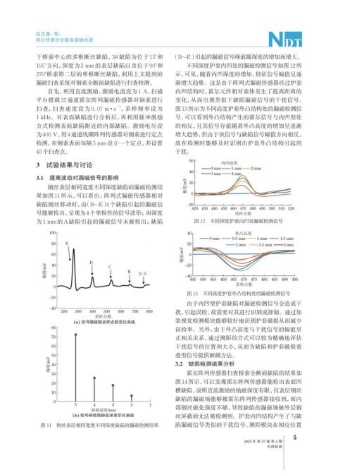 漏磁扫查系统对钢索全断面缺陷进行扫查检测。 渐增大趋势。这是由于阵列式漏磁传感器经过护套