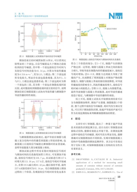 与裸钢筋锈蚀试验相比,超声导波在钢筋与混 准确对应钢筋锈蚀的不同阶段,实现对钢筋混凝土