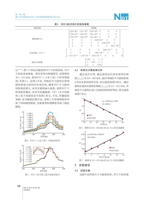 损伤程度之间均存在相关性,随着PZT片与损伤 损伤定量的有效特征频段[f ,f ]为311~321 kHz,导
